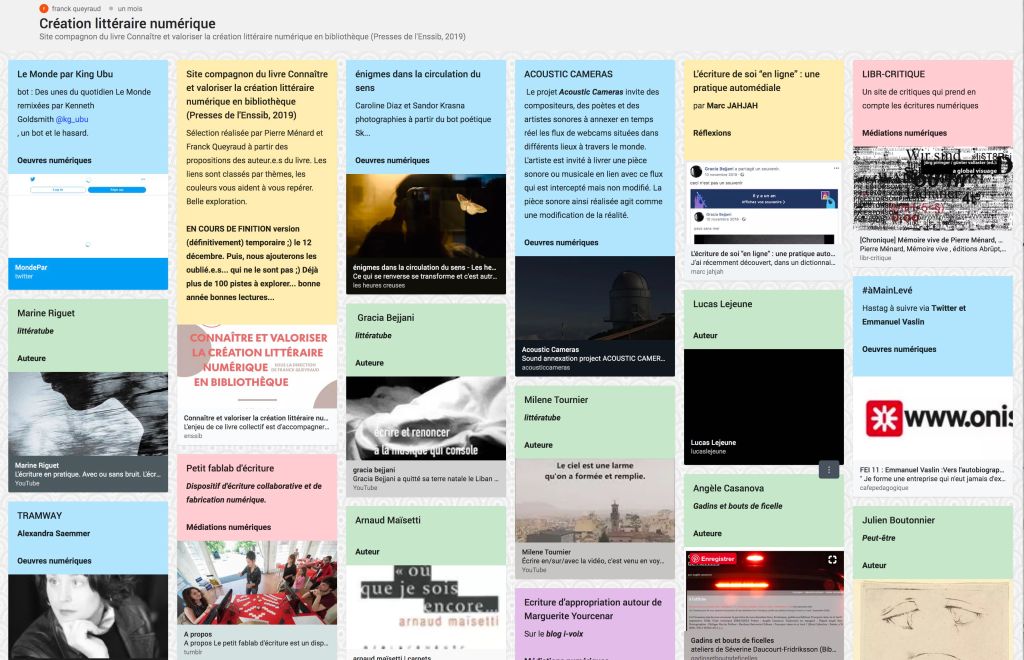 gracia bejjani 15 février 2020 actus & publications, billets critiques Création littéraire numérique Site compagnon du livre Connaître et valoriser la création littéraire numérique en bibliothèque (Presses de l’Enssib, 2019) cartographie du web littéraire francophone J’aime chargement… Similaire
