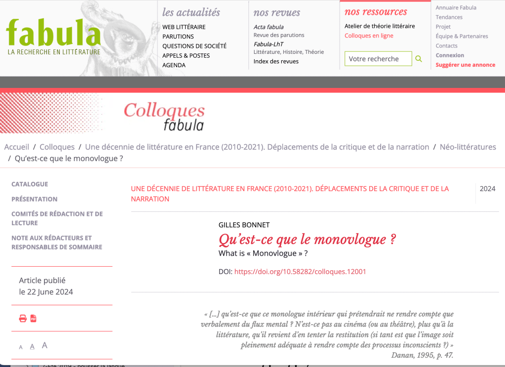 à la suite du colloque « La littérature française à l’épreuve du XXIe siècle : romans, récits et narrations numériques (2011-2020) » à la Sorbonne Nouvelle, l’article de Gilles Bonnet est publié dans les Actes hébergés par Fabula.