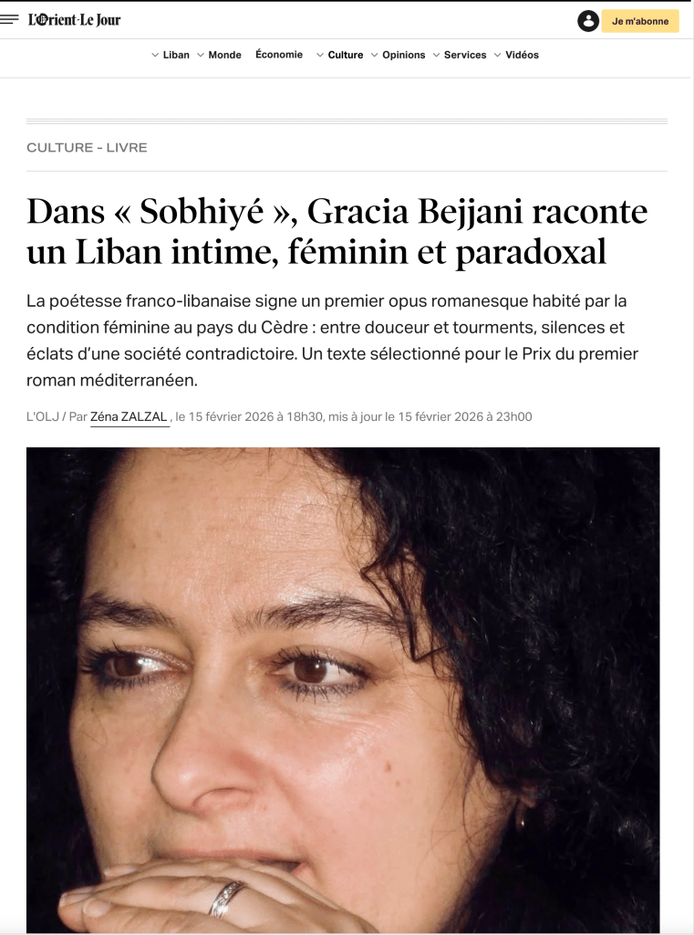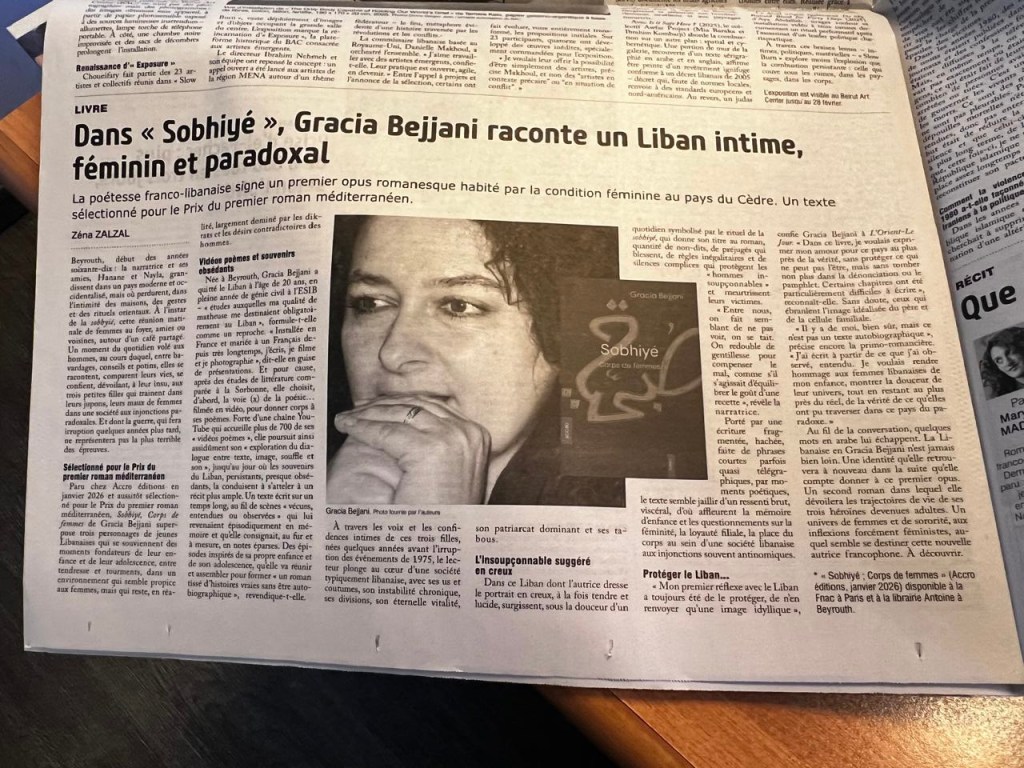Sobhiyé – Corps de Femmes fait l’objet d’un bel article dans L’Orient-Le Jour ! Honorée de recevoir une telle place dans ce journal de référence, si emblématique. Un grand merci à Zena Zalzal pour son regard sensible sur ces voix de femmes.