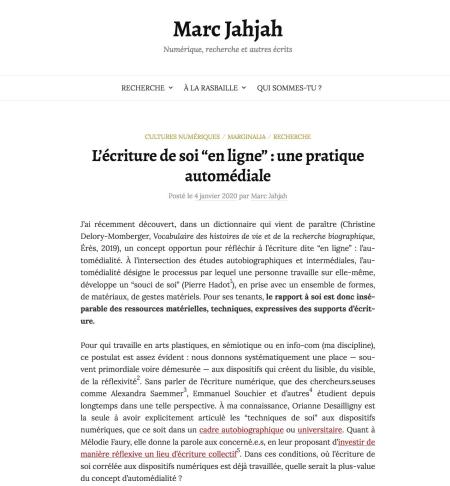 L’écriture de soi “en ligne” : une pratique automédiale. lire l’intégralité de l’article sur le blog de Marc […]
